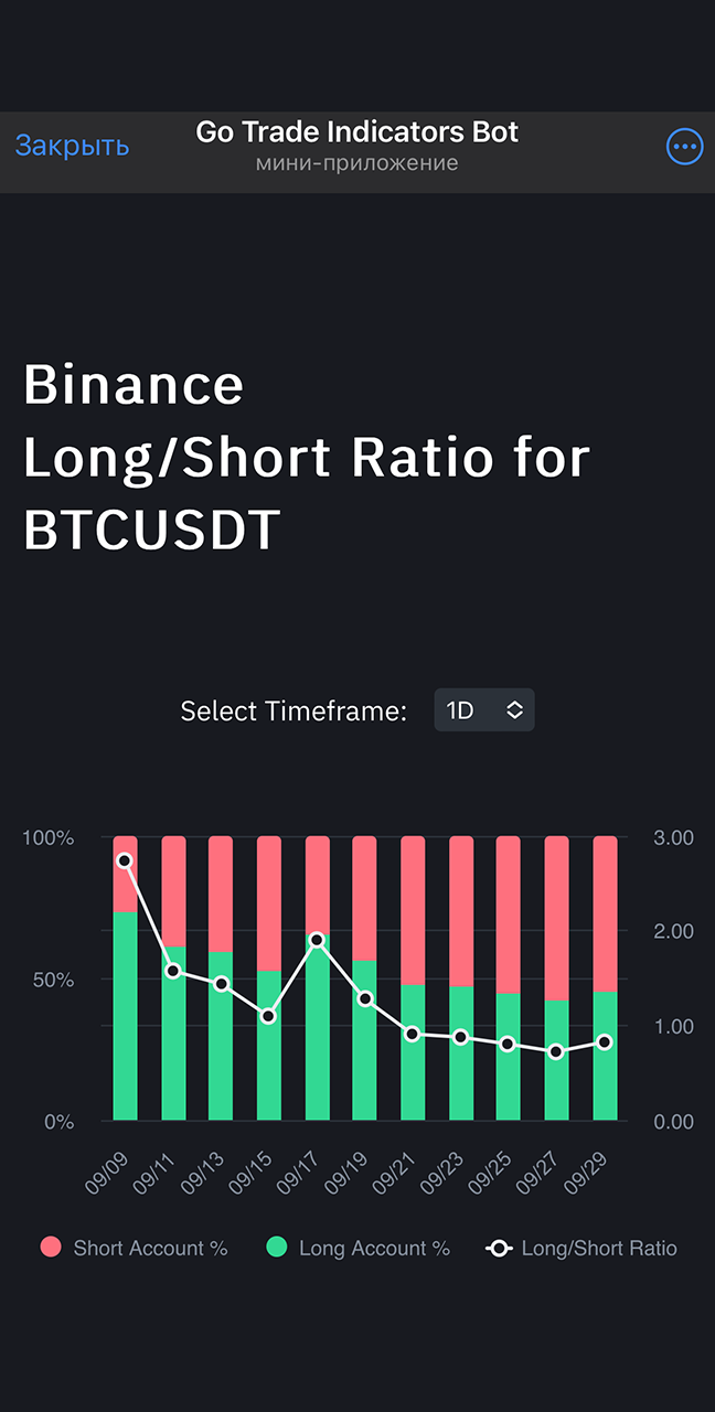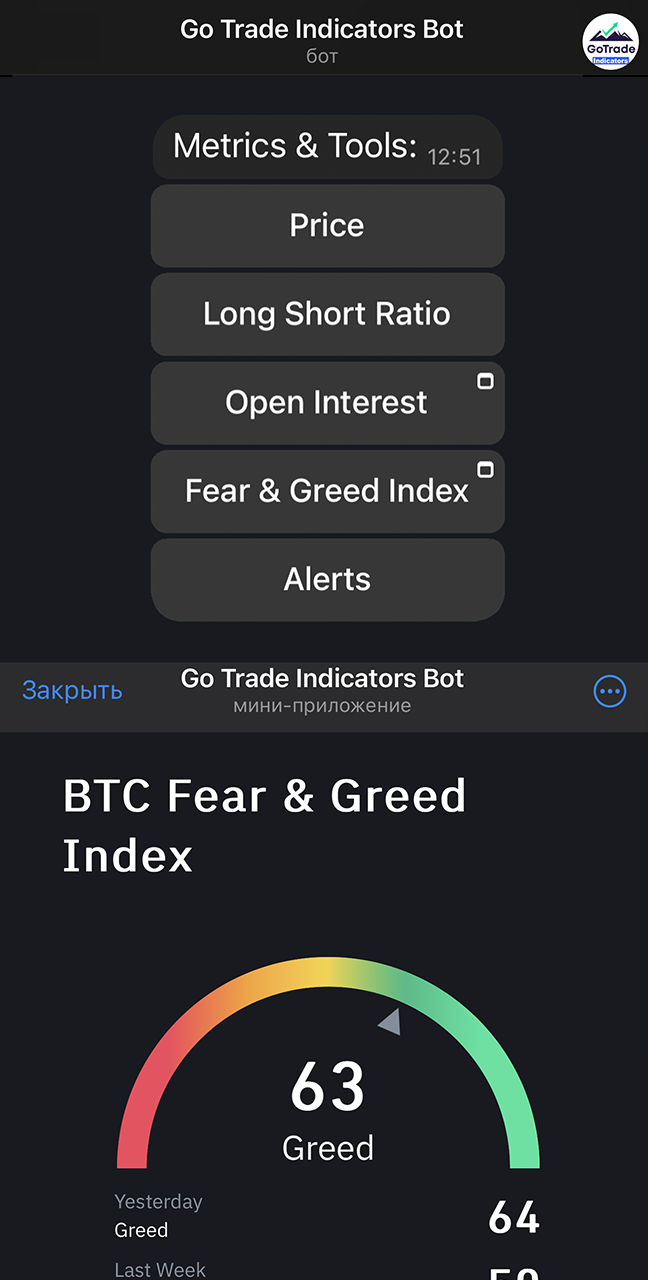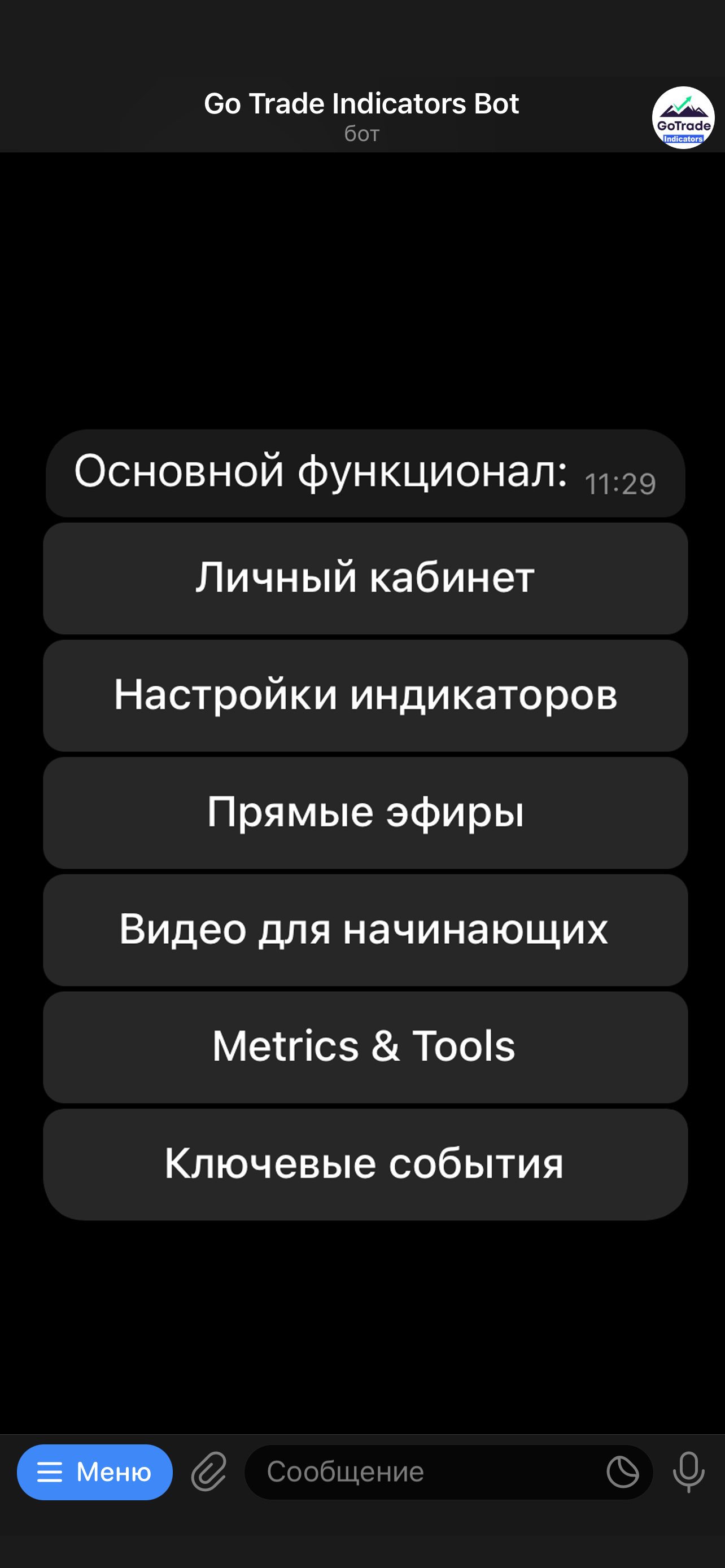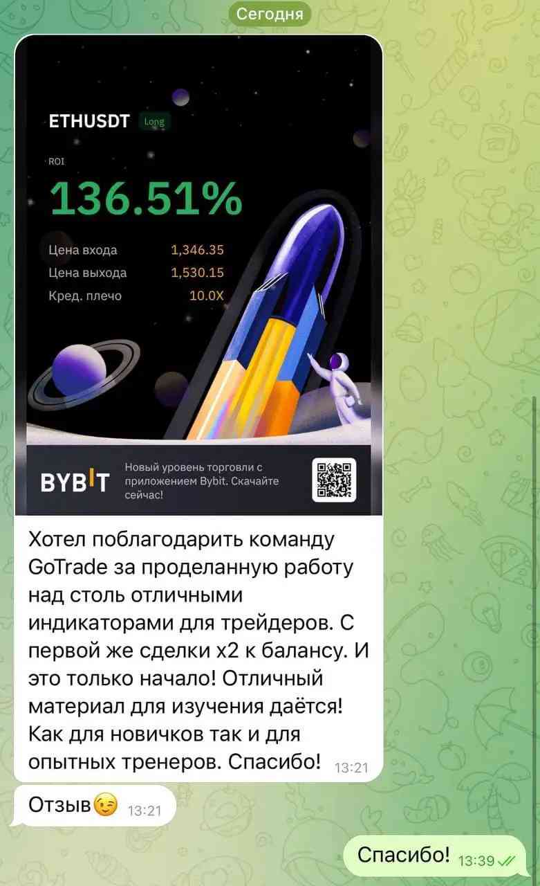 Go Trade Indicators Bot - многофункциональный телеграм бот, который будет Вашим помощником в мире трейдинга. Бот обладает широким спектром возможностей, которые сэкономят Ваше время и помогут Вам в поиске информации. Помимо обширного функционала, в телеграм боте Вы сможете наблюдать за сделками Александра в рамках его локальной торговли. Сразу после открытия позиции, бот пришлет Вам подробности сделки, которую открыл Александр.