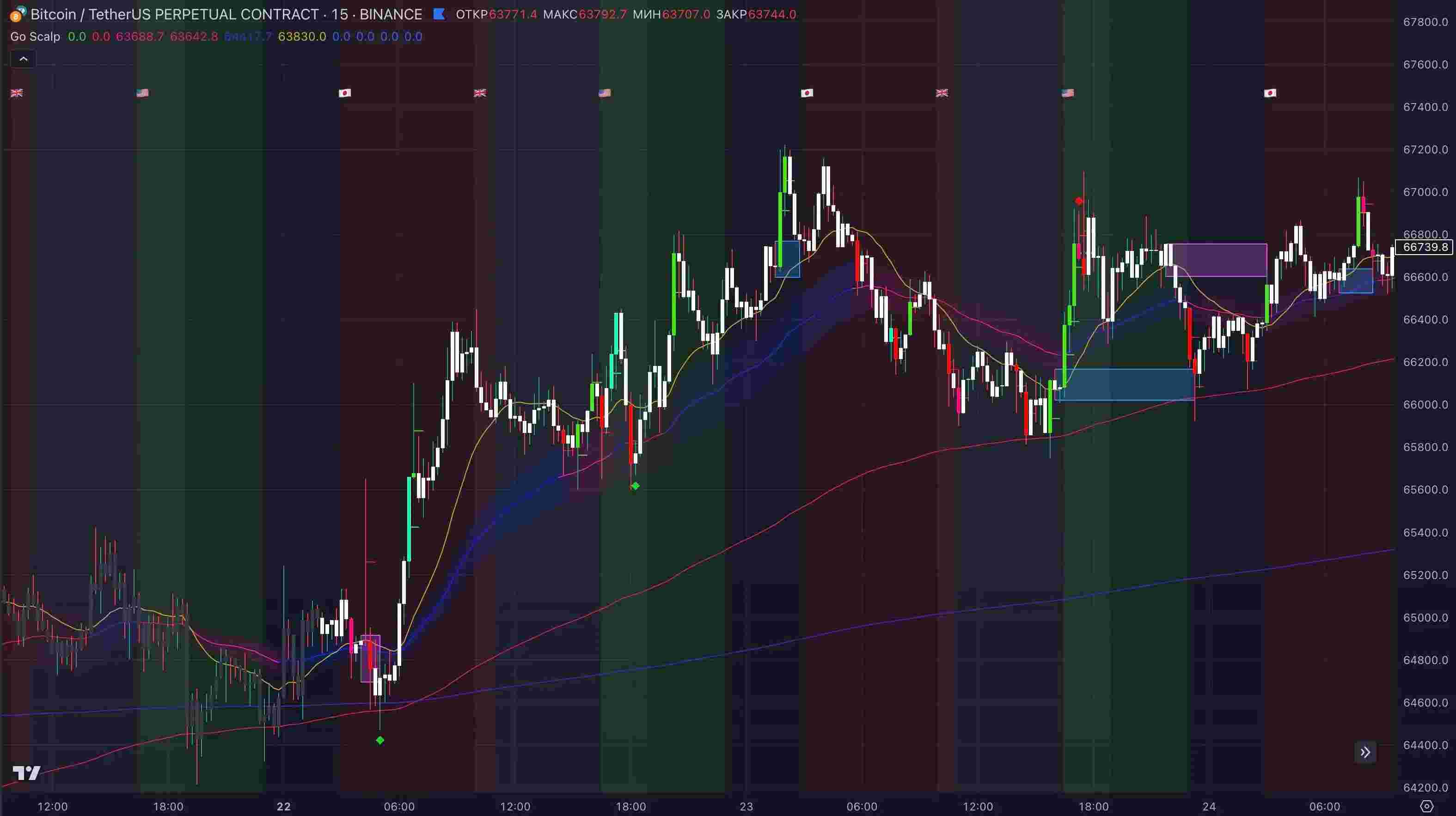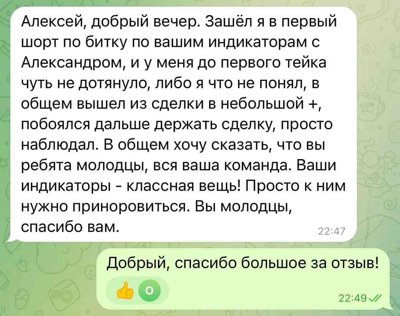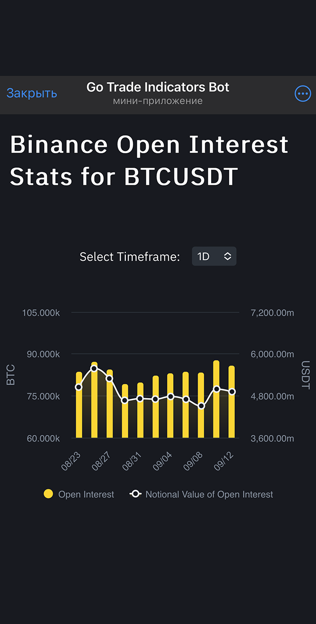 Go Trade Indicators Bot - многофункциональный телеграм бот, который будет Вашим помощником в мире трейдинга. Бот обладает широким спектром возможностей, которые сэкономят Ваше время и помогут Вам в поиске информации. Помимо обширного функционала, в телеграм боте Вы сможете наблюдать за сделками Александра в рамках его локальной торговли. Сразу после открытия позиции, бот пришлет Вам подробности сделки, которую открыл Александр.